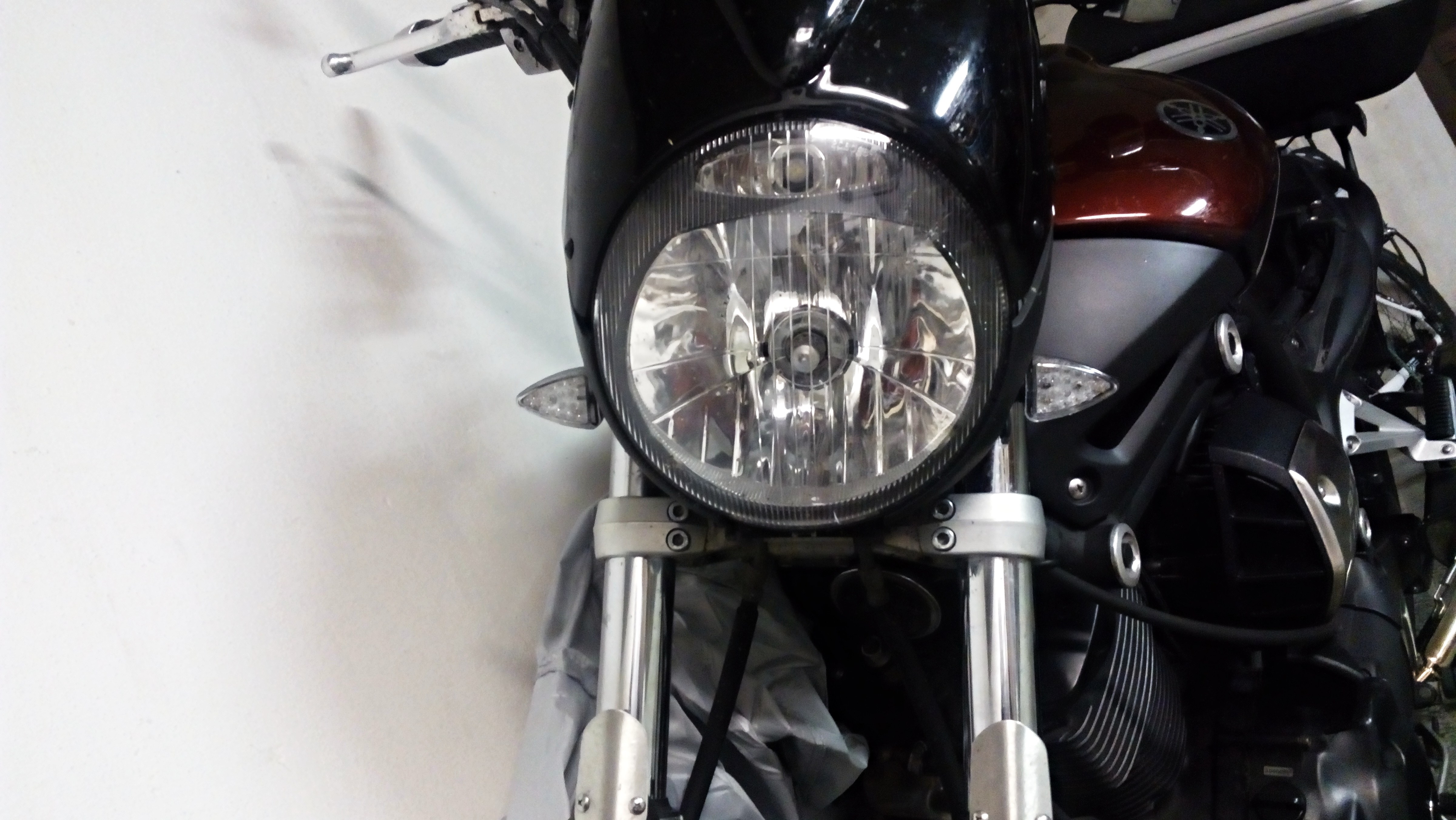 Zhruba do těch míst je mám vyvedené teď, ale na bezmála 2kilovém ocelovém držáku, který mi už vibracemi rozpraskal zadní blatník. Takže zkouším spíš dát váhu pryč.