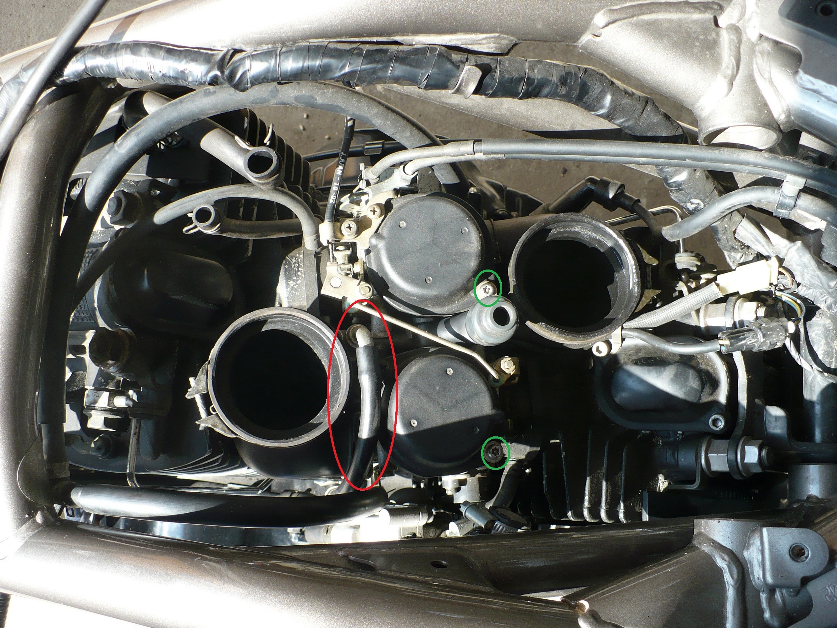 Moc díky za rady,jak budu doma tak se na to podívám a začnu těma svíčkama.Na ty karburátory se po přečtení pár vašich předchozích přízpěvků moc necejtím(navíc nemám klíč na ty hlavičky), ale uvidím....ohledně toho ucpanýho přívodu do karb, je to ta hadička na foto?končí mi hned na boku za odpojeným AIS.